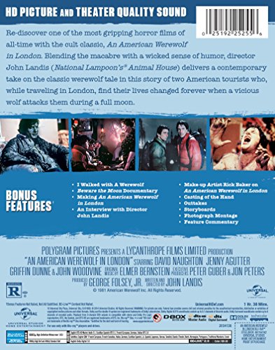 Re-discover one of the most gripping horror films of all-time with the cult classic An American Werewolf in London. Blending the macabre with a wicked sense of humor, director John Landis (National Lampoon’s Animal House) delivers a contemporary take on the classic werewolf tale in this story of two American tourists who, while traveling in London, find their lives changed forever when a vicious wolf attacks them during a full moon. Featuring groundbreaking, Academy Award-winning make-up by Rick Baker (The Wolfman), this digitally remastered Full Moon Edition also includes the new feature-length documentary Beware the Moon.