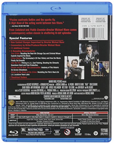 When Al Pacino and Robert De Niro squarer off, HEAT sizzles. A tale of a brilliant L.A. cop (Pacino) following the trail from a deadly armed robbery to a crew headed by an equally brilliant master thief (De Niro). Val Kilmer, Jon Voight, Tom Sizemore, Ashley Judd and Natalie Portman co-star.