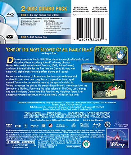 Disney presents a Studio Ghibli film about the magic of friendship and sisterhood from Academy Award®-winning director Hayao Miyazaki (Best Animated Feature, 2001, Spirited Away). Celebrate the 25th anniversary of My Neighbor Totoro – available for the first time on Disney Blu-ray, with a new HD digital transfer and perfect picture and sound!