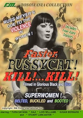 FASTER PUSSYCAT, KILL! KILL! is the story of a new breed of SUPERWOMEN emerging out of the ruthlessness of our times. We are introduced to three BUXOM Go-Go girls: VARLA, ROSIE, and BILLIE, wildly dancing the Watusi before the leers, jeers and lecherous come-ons of their drooling all-male audience. The violence, implicit in the girls' tease, is quickly moved out of the microcosmic bar into the outside world as they literally let go of themselves, embarking on a wild, violent, deadly journey of vengeance on all men. VARLA, the outrageously abundant KARATE MASTER leader of the pack, breaks the arms and back of one man, runs her Porsche over two others, grinds a fourth, a muscleman, against a wall and, eventually, deliberately goes down the path of her own self-destruction, dragging her two BUXOTIC cohorts along with her.