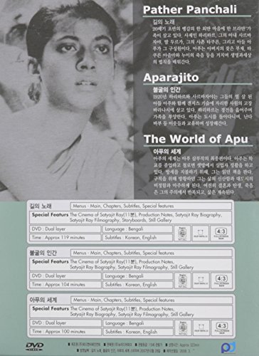 Import from South Korea , All Regions NTSC ****Bengali Sound with English or Korean subtitles****Satyajit Ray's Box Set includes: Pather Panchali [1955] , Aparajito [1956] ,Apur Sansar. The World Of Apu [1959]