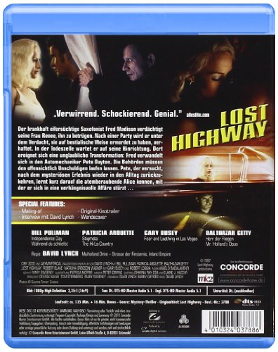 This Blu-ray box set includes the feature films Mulholland Drive, Lost Highway and Inland Empire. Bonus features include Making of documentaries, interviews with David Lynch, Naomi Watts, Laura Elena Harring, Justin Theroux, and trailers. Since the primary audio track is german, customer need to change the audio track to second audio to english. You can make this change on their blu-ray menu or blu-ray player remote control.