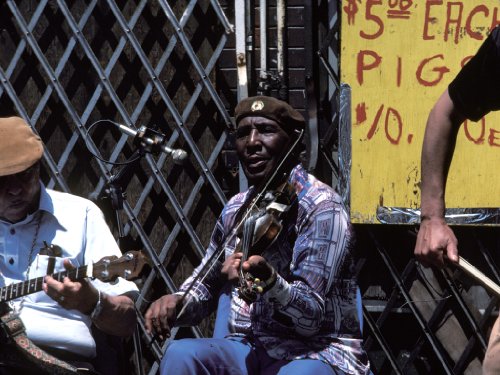 Old-time-music aficionado Terry Zwigoff's first film, Louie Bluie, has been saved from extinction, according to the director's commentary on this Criterion Collection rerelease. The film he shot it on apparently was suffering from a lethal degradation called "vinegar syndrome," but fortunately viewers now have DVD access to the story that inspired this music collector to become a documentary filmmaker. At an hour long, Louie Bluie is packed with information, half about fiddle and mandolin master Howard Armstrong, and half about the history of old-time traveling bands, many of whom were extended families on jugs or strings, as was Armstrong's. Zwigoff shot the film partially in Armstrong's Detroit housing project, recruiting musicians Ted Bogan, "Banjo" Ikey Robinson, and "Yank" Rachell in order to capture Armstrong jamming out with musicians of his ilk, and to extract the same charisma he entertained with in his 1930s and '40s heyday. In the kitchen over buckets of chicken, in a grimy shantytown back alley, or in his sister-in-law's living room, Armstrong sings and plays his instruments between spinning hilarious yarns and reminiscences. Two scene highlights include Armstrong at a Tennessee yard sale, yakking about the invention of porch screen doors, and Armstrong busting out, to "Banjo" Ikey's surprise, his "Whorehouse Bible," a fantastic handmade book of drawings and stories penned by the man himself. Vintage archival photography peppers the film, to contextualize what Armstrong describes from his past, and a trip Zwigoff and Armstrong take to Armstrong's hometown in Tennessee yields some great additional subject matter. While the only real supplementary material here are some excellent jams that didn't make the final cut, Zwigoff's commentary adds much to the film's cultural importance. It also underscores, to reiterate what this innovative director says, that if you've got the subject matter, one simply feels compelled to turn the camera on and shoot. As a character, a comedian, a musical talent, and a living legend, Armstrong is the man. Lucky for us, Zwigoff had the good eye, and the humor, to translate for a film audience this slice of blues music history for posterity. --Trinie Dalton